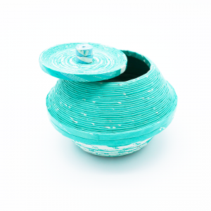 Un portaoggetti con coperchio realizzato da Aziz, giocando con volantini dai colori accesi. Un oggetto semplice e resistente che può diventare un contenitore utile per riporre caramelle, chiavi, potpourri ed oggetti più svariati e rendere più colorato qualsiasi ambiente della tua casa.